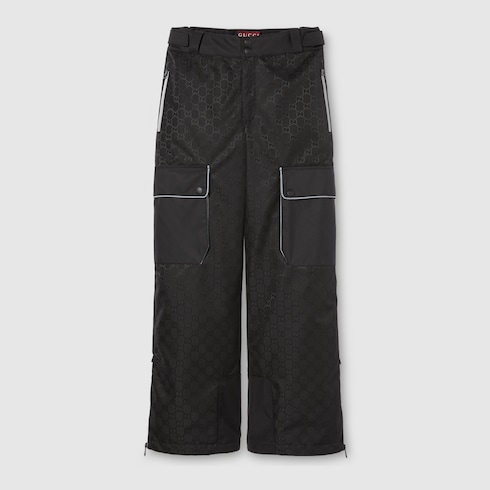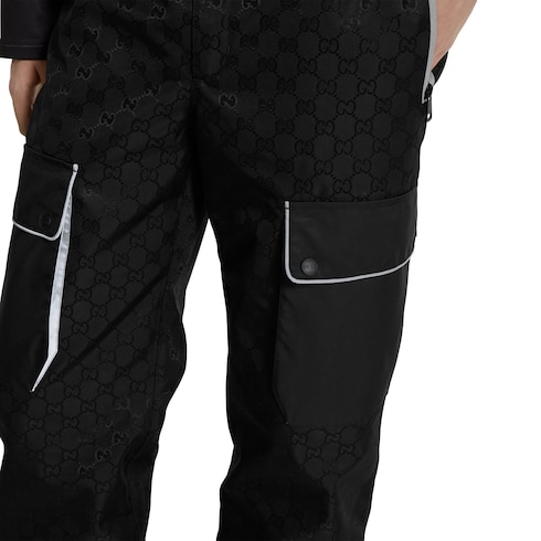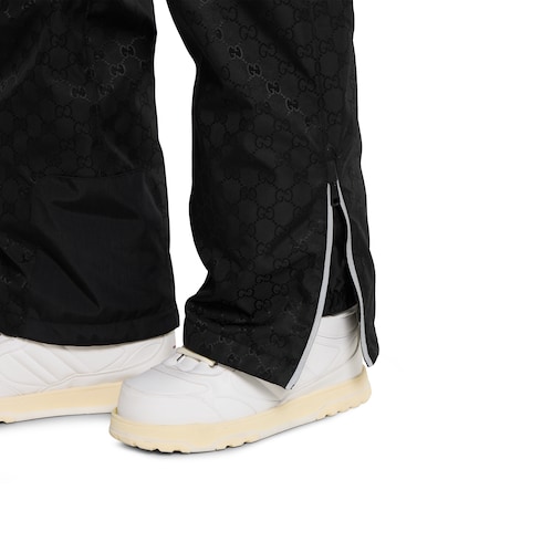 Gucci Altitude, la primera colección de ropa deportiva de invierno de la Firma, combina rendimiento avanzado y códigos exclusivos. Este pantalón se ha confeccionado con jacquard de tejido técnico negro con GG y membrana.