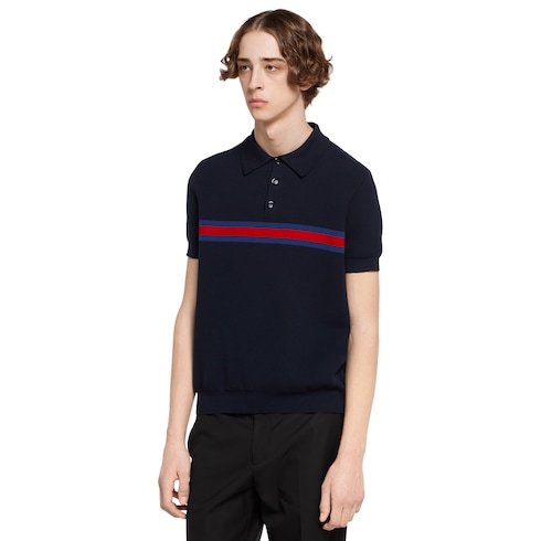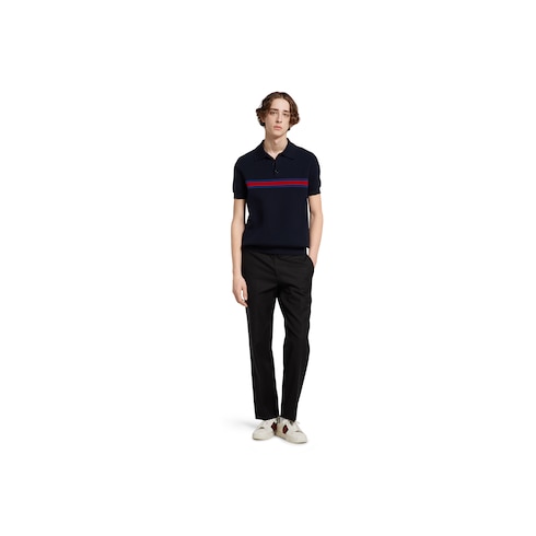 La Firma continúa explorando su conexión con el mundo del tenis, que comenzó en la década de 1970. Las exclusivas prendas se centran en elementos clásicos como la tribanda Web, así como en materiales innovadores. Este polo de punto de piqué de algodón azul marino se caracteriza por un detalle de tribanda Web horizontal.
