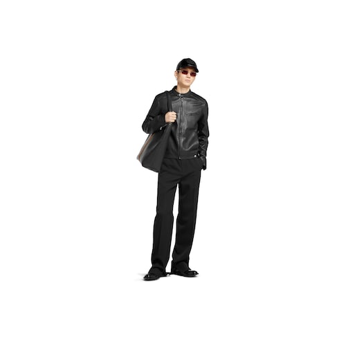 Para la colección Pre-Fall 2025, las prendas de abrigo básicas de estilo urbano, como las chaquetas de piel o bomber, combinan sofisticación y materiales lujosos con un toque refinado. Esta chaqueta con cremallera se ha confeccionado en piel suave negra con un logotipo en relieve y botones Gucci de metal.