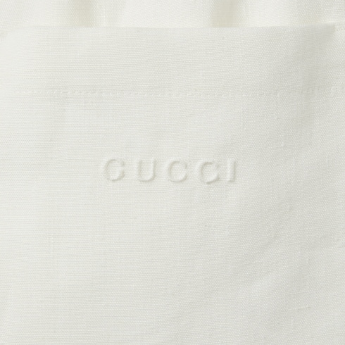 En la colección Pre-Fall 2025, los motivos de inspiración marítima como rayas y anclas se combinan con el logotipo de la Firma para realzar diseños informales perfectos para disfrutar junto al mar. Estos shorts de lino blanco se realzan con un logotipo Gucci en relieve.