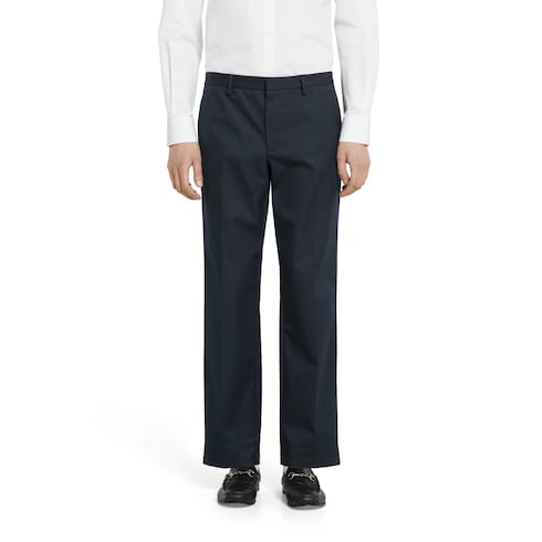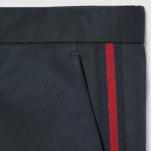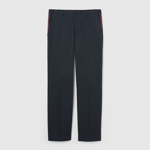 La colección Pre-Fall 2025 combina a la perfección texturas versátiles y detalles sofisticados. Estos pantalones de sarga de algodón azul oscuro se realzan con un detalle de tribanda Web en los bolsillos.