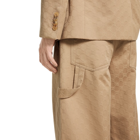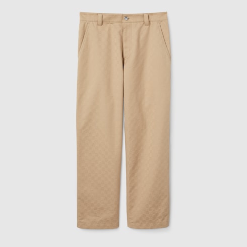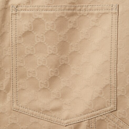 En la colección Pre-Fall 2025, los motivos de inspiración marítima como rayas y anclas se combinan con el logotipo de la Firma para realzar diseños informales perfectos para disfrutar junto al mar. Estos pantalones se han confeccionado en gabardina de algodón con GG beige claro.