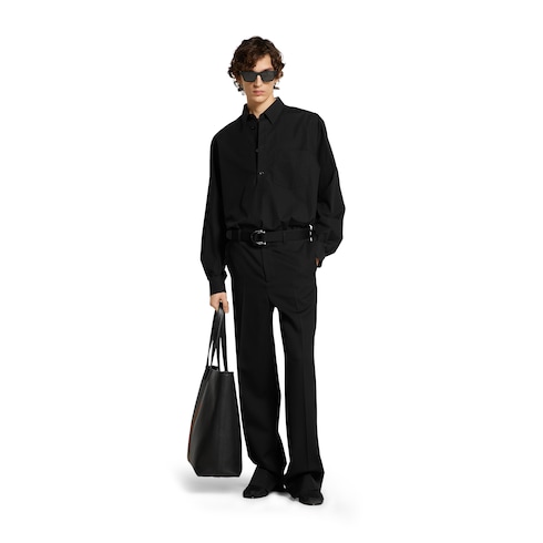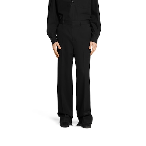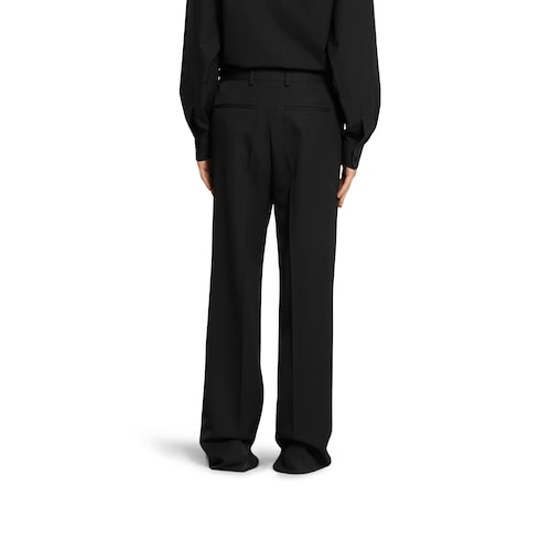 La moda formal inspirada en el mundo del ocio trae nuevos diseños y cortes a la colección Pre-Fall 2025. Los elementos exclusivos se combinan con detalles refinados. Estos pantalones de gabardina de lana negra se decoran con un bordado de Doble G.