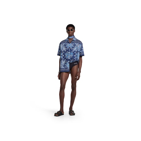 La colección Pre-Fall 2025 incluye una selección de prendas ready-to-wear que destacan por el estilo bohemio con estampados coloridos y las siluetas informales. Esta camisa de ajuste estándar de popelina de algodón azul se caracteriza por un estampado de pañuelo por toda la superficie.