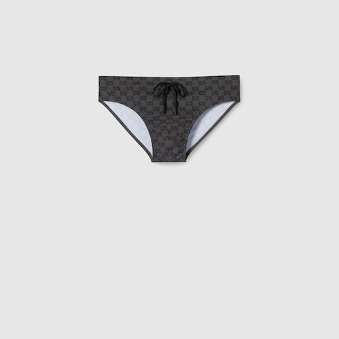 Los códigos emblemáticos de la Firma y los motivos sofisticados se reinterpretan en clave contemporánea para la colección Pre-Fall 2025. Este bañador se ha confeccionado en elastano con GG negro.