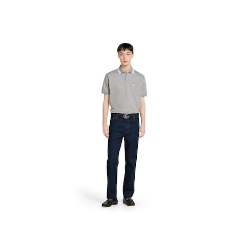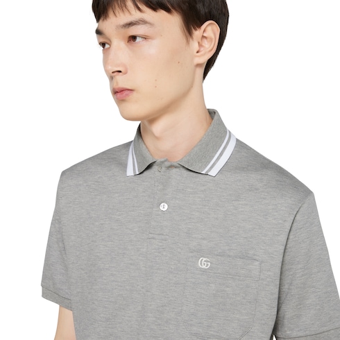 Los tonos otoñales definen una selección de prendas ready-to-wear y se combinan con detalles clásicos de la Firma. Este polo de ajuste estándar se ha confeccionado en piqué de algodón elástico con mezcla gris y un bordado de Doble G.