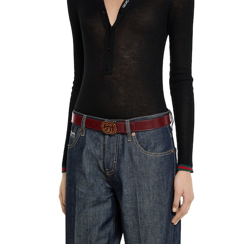 Este cinturón llamativo forma parte de la colección Pre-Fall 2025. El diseño de piel lisa está inspirado en el legado de la Firma y se caracteriza por una hebilla de GG entrelazada.