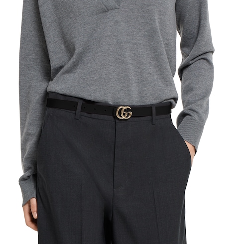 La colección Otoño Invierno 2025 trae nueva versiones de los inconfundibles diseños GG Marmont. Este cinturón reversible se ha fabricado en GG Supreme y piel con una hebilla de Doble G.