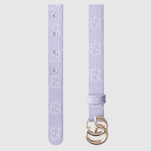 Este cinturón para el día a día forma parte de la colección Pre-Fall 2025. El diseño de denim con GG está inspirado en el legado de la Firma y se caracteriza por una hebilla de Doble G dorado claro.