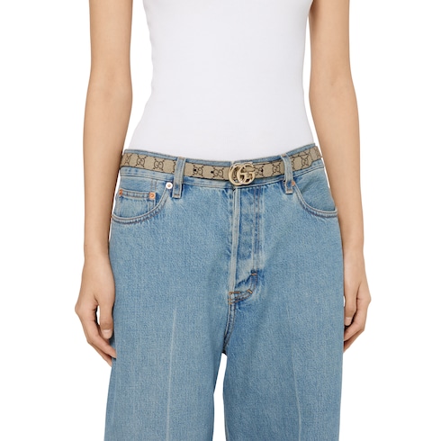 Este cinturón reversible forma parte de la colección Pre-Fall 2025. El diseño de piel y GG Supreme está inspirado en el legado de la Firma. La prenda se completa con una hebilla de Doble G en tono dorado claro.