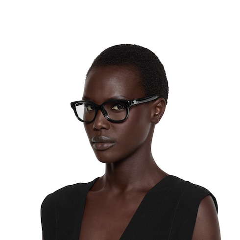 La colección de gafas Pre-Fall 2025 combina a la perfección los codiciados diseños de épocas pasadas y una estética contemporánea con el logotipo de la Firma. En este modelo, la montura de inyección negra se une a un detalle de Doble G.