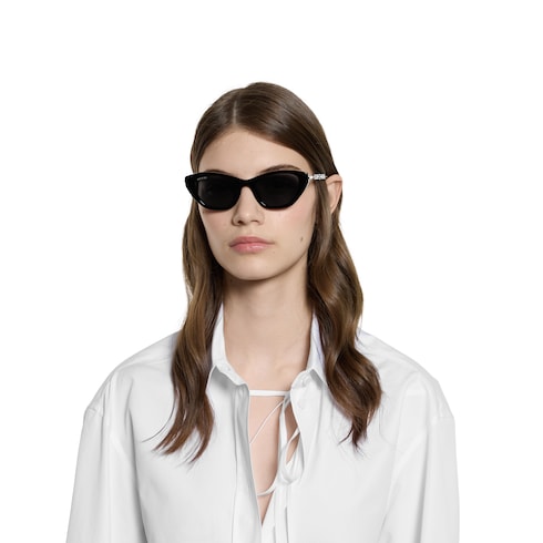 La colección de gafas Pre-Fall 2025 cuenta con clásicos de estilo contemporáneo. Estas gafas de sol de ojo de gato se han fabricado en acetato negro y metal plateado con cristales y un detalle perforado de GG entrelazada.