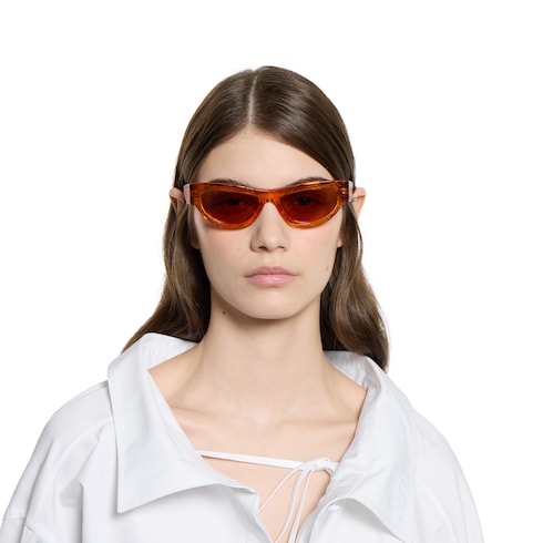 - Patillas de acetato en naranja transparente brillante con motivo GG integral grabado