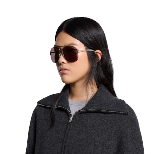 La colección de gafas de la Firma sigue reinterpretando motivos emblemáticos, como la GG, la tribanda Web, el bambú, el Horsebit y los elementos de inspiración ecuestre, con materiales lujosos, artesanía con gran detalle y colores innovadores. Estas gafas de sol tipo aviador se presentan en metal brillante con el logotipo de Gucci.