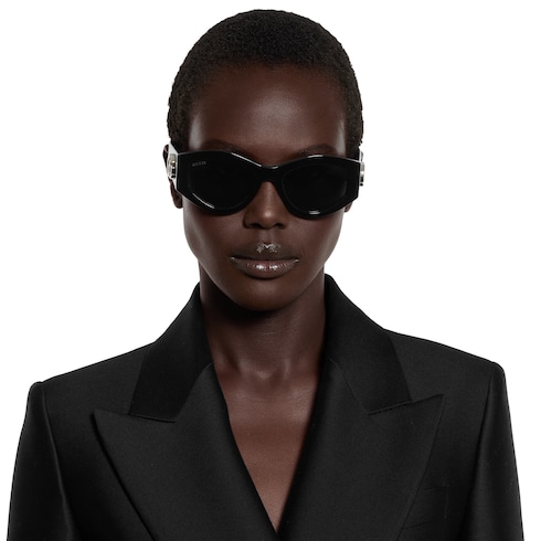 - Patillas de acetato negro brillante con detalle de Doble G