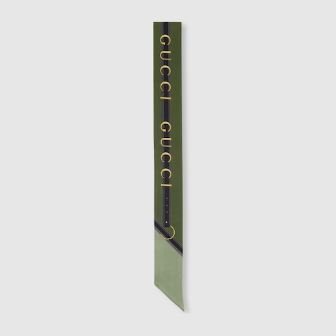 En la colección Otoño Invierno 2025, la Firma rinde homenaje a sus orígenes ecuestres con diseños como esta cinta de seda con un estampado integral Gucci de cinturones y Horsebit.