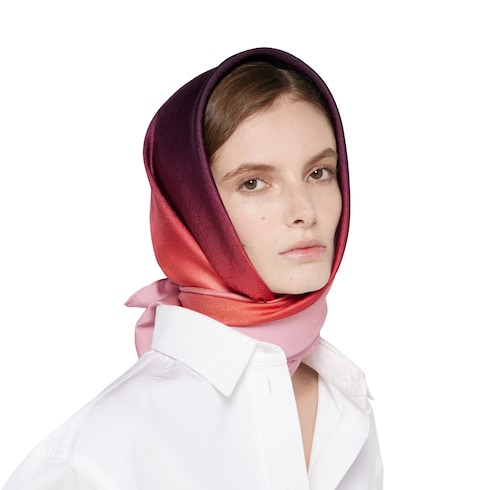 Este pañuelo cuadrado de seda exhibe una obra del artista Jonny Niesche, quien explora una abstracción en la que los colores vivos y la ilusión envuelven a los espectadores con total estimulación sensorial. Como parte del proyecto 90 x 90, este diseño reinterpreta el motivo GG de Gucci.