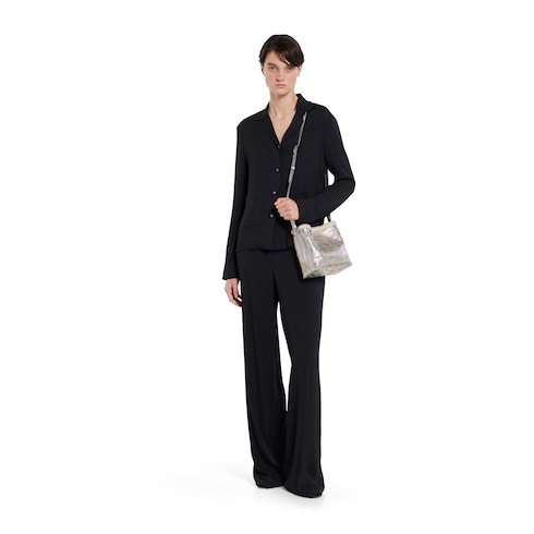 - Rellene el bolso de mano con papel de seda para que conserve su forma y absorba la humedad, y guárdelo en la bolsa de franela suministrada.