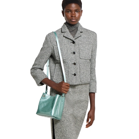La nueva colección GG Emblem reinterpreta la historia de la Firma, marcada por la elegancia y la artesanía. Este bolso bombonera destaca por su diseño funcional con un compartimento interior con forro de algodón.