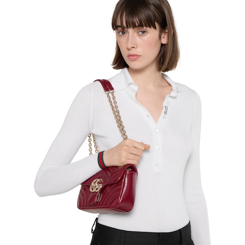El bolso GG Marmont, una línea exclusiva de la Firma, se reinterpreta con un estilo contemporáneo. La confección más suave, la correa de cadena facetada y el aplique de Doble G se combinan con una excepcional piel flexible para crear una nueva versión de un clásico.