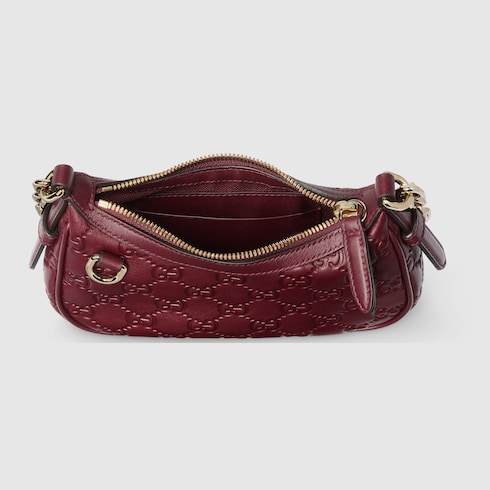 En la colección Otoño Invierno 2025, este bolso de hombro pequeño de la línea GG Emblem exhibe una silueta redonda, apliques dorados y una correa de cadena. El cierre con cremallera revela un interior con un bolsillo para tarjetas y un sofisticado forro de lino y algodón.