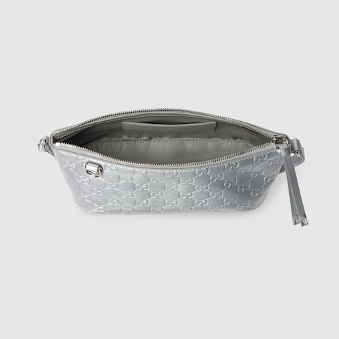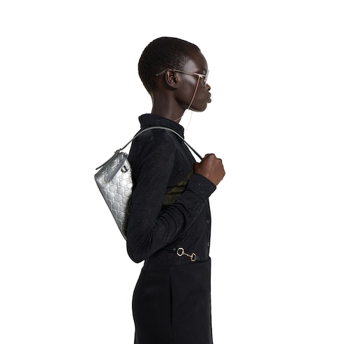 La colección GG Emblem reinterpreta el legado de elegancia y artesanía de la Firma con un diseño metalizado que aporta un brillo innovador al exclusivo motivo GG y que se complementa con un ribete de piel a juego.