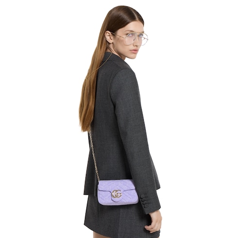 - Denim matelassé con GG y motivo chevron lila y blanco