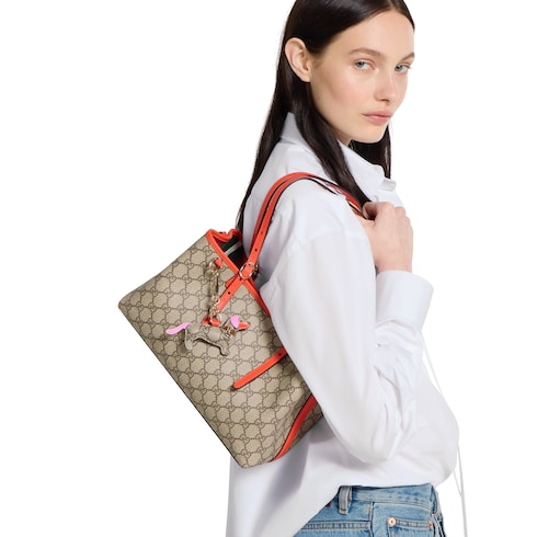 La colección GG Emblem reinterpreta la historia de la Firma, marcada por la elegancia y la artesanía. Este bolso tote exhibe muescas numeradas en las asas superiores ajustables, inspiradas en el mundo ecuestre.