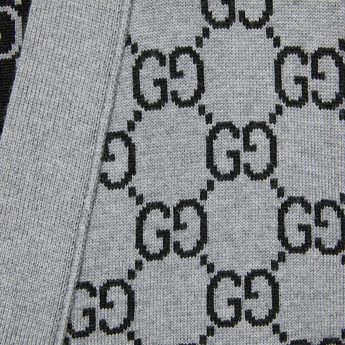 - Jacquard de lana extrafina con GG negro y gris por el otro lado