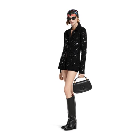 El hilo sofisticado aporta volumen a nuevos diseños de punto y destaca aún más gracias a los detalles artesanales que resaltan las ricas texturas. Los hilos cobran una importancia renovada en estas prendas de punto, que pueden llevarse solas como prenda destacada o con otras piezas para complementar el fondo de armario de la colección Pre-Fall 2025. Este cárdigan tipo polo de mezcla de viscosa exhibe un bordado de lentejuelas por toda la superficie.