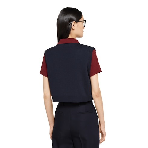 Top seda y lana con cuello de polo y chaleco