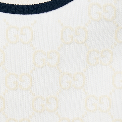 La colección Pre-Fall 2025 combina a la perfección texturas versátiles y detalles sofisticados. Los tejidos de jacquard con GG y los detalles complejos evolucionan para reflejar el cambio de temporada. El motivo GG integral define este vestido con un sofisticado ribete azul marino en contraste.