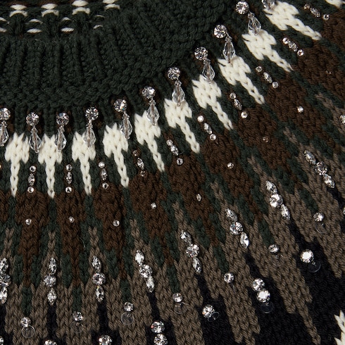 Los refinados tonos de marrón, beige y naranja recuerdan a los tonos cambiantes de la naturaleza. La paleta de colores, versátil y atemporal, se integra fácilmente en cualquier fondo de armario para el día a día. Este jersey oversized está confeccionado en jacquard de lana noruega y cuenta con un bordado de cristales.