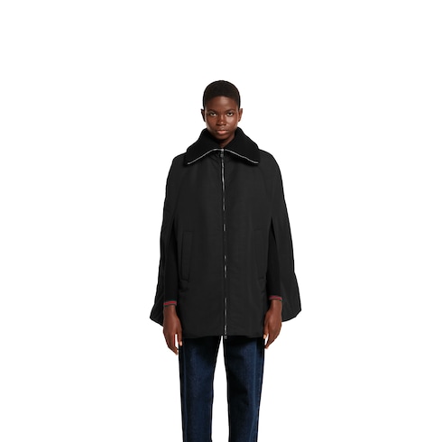 La colección Pre-Fall 2025 introduce una nueva versión de los materiales cálidos en prendas de abrigo sofisticadas, con siluetas tradicionales y contemporáneas. Esta contemporánea chaqueta tipo capa se ha confeccionado en faya de poliéster con detalles exclusivos, como la capucha de punto y el cordón en el bajo, y se completa con un sutil detalle de logotipo.