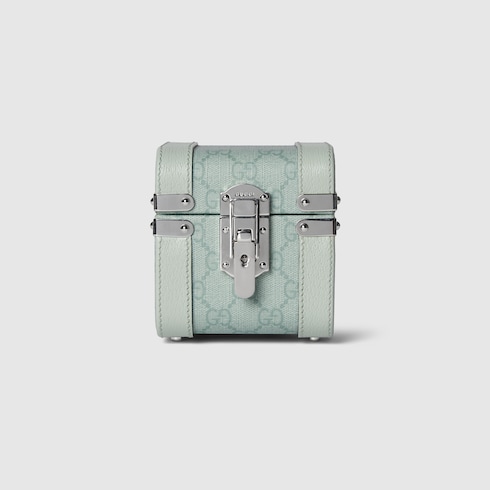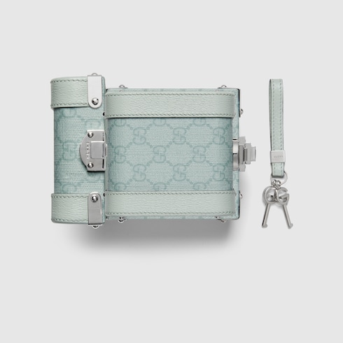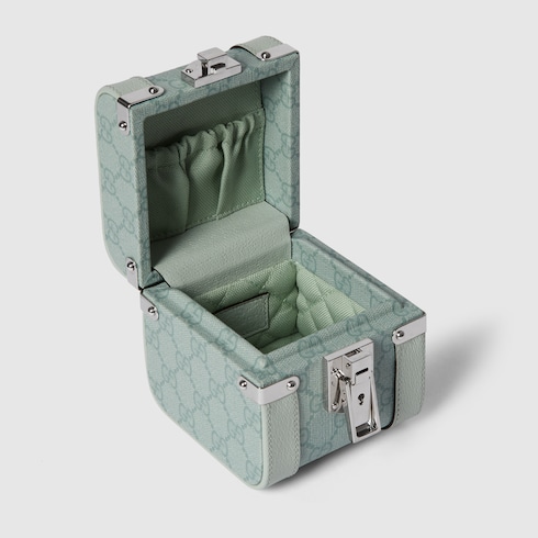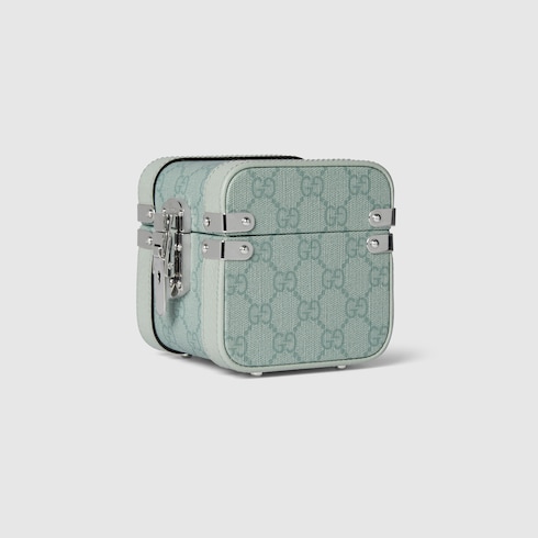 Este producto forma parte de la línea Ophidia, con una selección de diseños de viaje que evocan los inicios de Guccio Gucci como portero. Este estuche de maquillaje rígido se ha reinventado para la colección Pre-Fall en un delicado verde pálido que da la bienvenida a una estación más cálida. Los apliques adicionales completan el diseño.