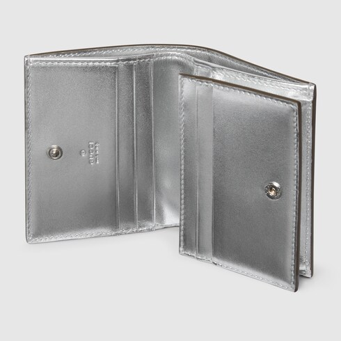 La colección GG Marmont presenta diseños metalizados para la temporada de regalos. En esta cartera de pitón de efecto laminado, la piel brillante es ideal para pasar del día a la noche, y se complementa con el aplique de Doble G.
