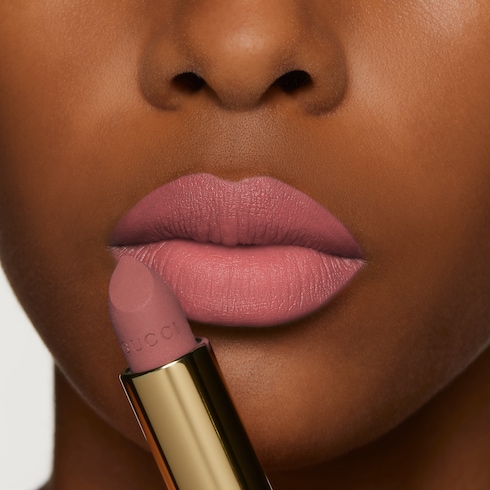 Rouge à Lèvres Mat présente une collection de rouges à lèvres aux couleurs intenses et au fini mat longue durée. Spécialement formulés avec des cires effet gel et des pigments très concentrés, ces rouges à lèvres offrent des couleurs éclatantes et une sensation de douceur veloutée. Cette palette aux nuances éclatantes s’inspire des légendes de l’âge d’or d’Hollywood. Les couleurs audacieuses font écho à l’excentricité et à la liberté d’esprit caractéristiques des collections de la Maison, toujours axées sur une absolue liberté d’expression individuelle. Ultime touche de raffinement, chaque rouge à lèvres est présenté dans un précieux écrin doré orné de gravures.