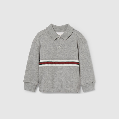 La bande Web issue des archives est omniprésente dans la collection Pre-Fall 2025 pour enfant, dans différentes versions. Les finitions coloris vert et rouge sur les pièces de prêt-à-porter, les chaussures et les accessoires donnent une allure sportive, adaptée à chaque aventure. Ce sweat-shirt pour bébé confectionné en coton feutré est agrémenté d’un détail bande Web en maille.