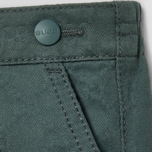 La collection Pre-Fall 2025 pour enfant présente une gamme de motifs emblématiques, notamment des détails logo signature. Ce pantalon pour bébé est confectionné dans une gabardine de coton GG, rendant hommage au monogramme immédiatement reconnaissable de la Maison.