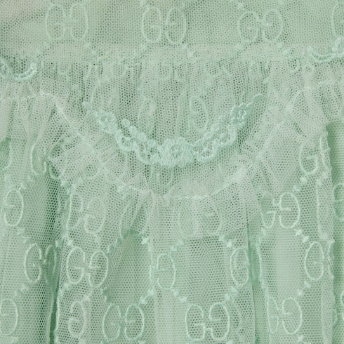 Des broderies subtiles aux imprimés sur toute la surface, les motifs emblématiques continuent d’enrichir la sélection issue de la collection Pre-Fall 2025 pour enfant. Confectionnée en tulle GG, cette robe pour bébé est rehaussée d’un col brodé.