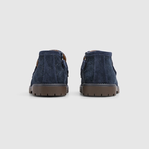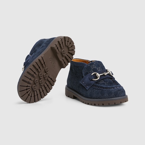 Des broderies subtiles aux imprimés sur toute la surface, les motifs emblématiques continuent d’enrichir la sélection issue de la collection Pre-Fall 2025 pour enfant. Ces bottines pour tout-petit confectionnées en daim GG se caractérisent par un détail Mors argenté.