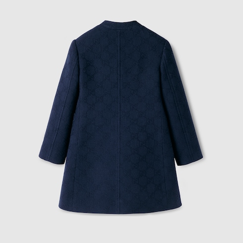 La collection Pre-Fall 2025 pour enfant présente une gamme de motifs emblématiques, notamment des détails logo signature. Ce manteau pour enfant est confectionné en laine GG, rendant hommage au monogramme instantanément reconnaissable de la Maison.