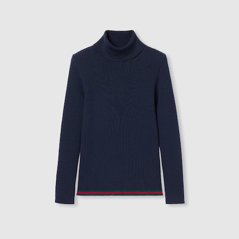 La bande Web issue des archives est omniprésente dans la collection Pre-Fall 2025 pour enfant, dans différentes versions. Les finitions coloris vert et rouge sur les pièces de prêt-à-porter, les chaussures et les accessoires donnent une allure sportive, adaptée à chaque aventure. Ce pull pour enfant confectionné en laine côtelée est agrémenté d’une finition bande Web.