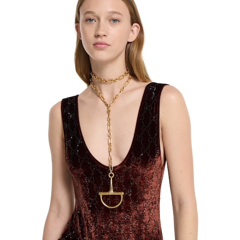 Pour la collection Automne-Hiver 2025, inspiré des modèles emblématiques, ce collier se caractérise par son symbole demi Mors signature. L’accessoire est ici présenté en laiton couleur or jaune.
