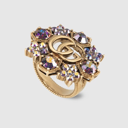Emblème signature de la Maison, les initiales du fondateur Guccio Gucci donnent tout son cachet à ce bijou tendance. Sertie de cristaux, cette bague Double G apporte une touche étincelante et raffinée.