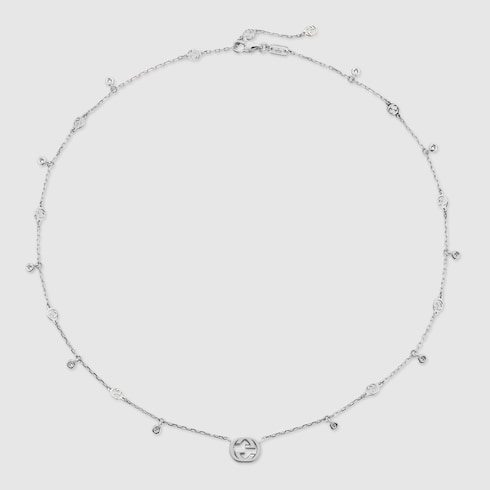 La collection de bijoux Gucci Interlocking s’inspire du logo géométrique pour créer cette pièce. Serti de diamants et rehaussé d’un détail GG enlacés, ce collier en or blanc 18 carats est idéal pour toutes les occasions.