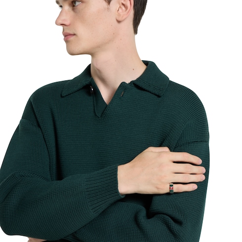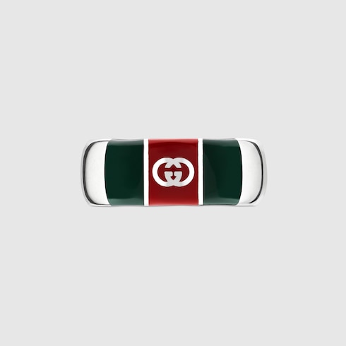 La collection de bijoux en argent de la Maison continue de revisiter ses codes emblématiques, mêlant matériaux somptueux, artisanat d’exception et teintes contemporaines — à l’image de cette bague large ornée d’un détail bande Web cylindrique.