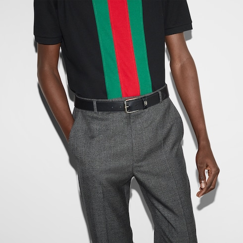 Pour la collection Pre-Fall 2024, une sélection de ceintures sont agrémentées de symboles emblématiques de la Maison. Respirant l’élégance, cette ceinture en cuir noir se caractérise par un détail GG enlacés subtil. Une boucle carrée argentée complète l’accessoire.