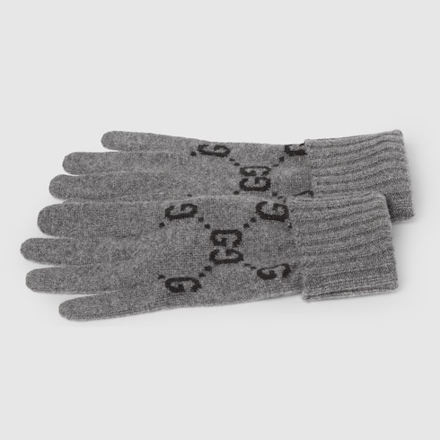 Les accessoires doux et en soie de la collection dynamisent les codes de la Maison à travers des finitions sophistiquées, des empiècements logo et de subtiles broderies. Ces gants sont présentés en cachemire GG avec des finitions côtelées ton sur ton.
