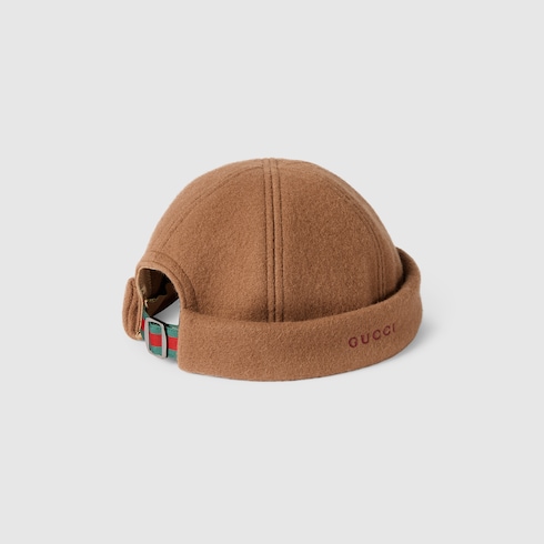 Pour la collection Automne-Hiver 2025, ce superbe bob en laine révèle une broderie Gucci contrastante.